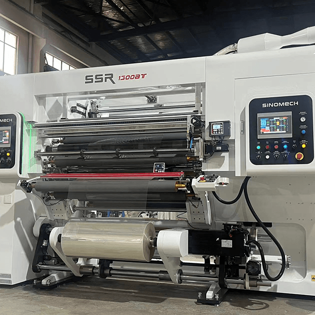 这款分切机适用于BOPP,PET,CPP,PE和其他塑料膜的分切,收放卷位于同一侧,操作灵活方便